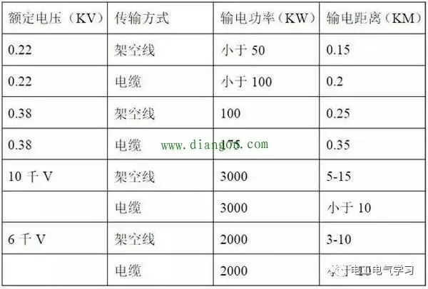 根據不同的額定電壓推薦不同的輸出容量輸電距離: